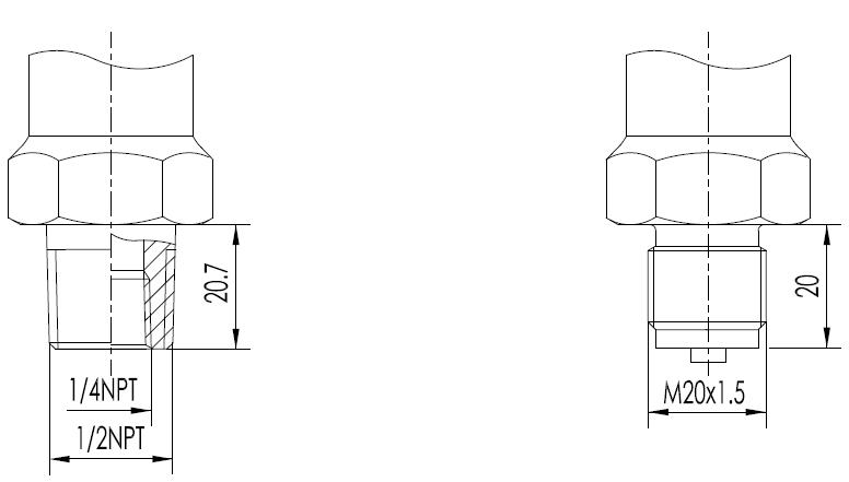 1/2英寸NPT 外螺紋(代碼2) M20x1.5 外螺紋(代碼3)